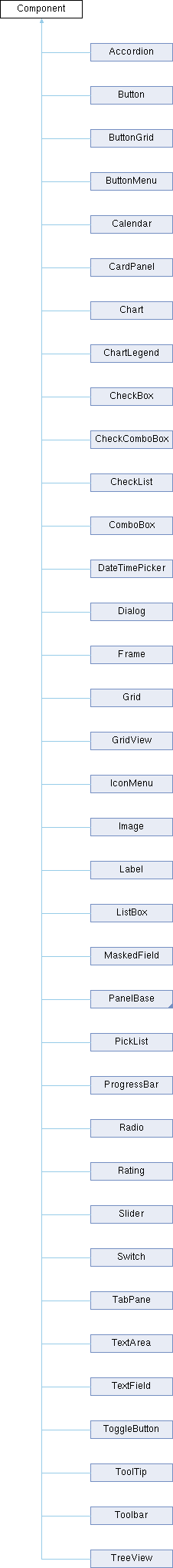 Reimplemented in Accordion, ButtonGrid, ButtonMenu, Calendar, CardPanel, Chart, ChartLegend, CheckBox, CheckComboBox, CheckList, DateTimePicker, FluidPanel, Frame, Grid, GridPanel, GridView, IconMenu, Label, ListBox, PickList, ProgressBar, Radio, Slider, Switch, TabPane, Toolbar, ToolTip, and TreeView.